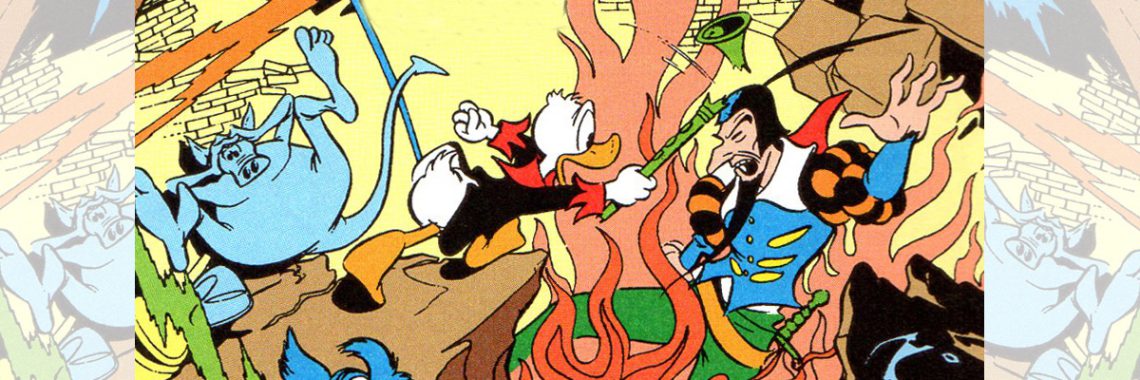 Torna questa settimana in edicola, sempre per la serie I Classici della Letteratura Disney, quella che viene riconosciuta come uno dei massimi capolavori di Luciano Bottaro nonché una delle storie Disney più conosciute nel Mondo. Parliamo de “Il Dottor Paperus”, storia in costume ispirata al Dottor Faust, rivisitazione a fumetti della celebre opera di Johann Wolfgang von Goethe, scritta da Federico Pedrocchi e illustrata da Rino Albertarelli nel 1941 per Topolino giornale. La trama (ampiamente analizzata su questo sito nella pagina monografica e nel saggio di Dario Ambrosini “Un cavaliere, l’Ombra e Margherita“) è stata scritta da Bottaro nel 1953, mentre svolgeva il servizio militare ad Orvieto, ma è stata pubblicata solo nel 1958 su Topolino (n° 188-189), con alcuni contributi di Carlo Chendi alla sceneggiatura, perchè l’allora direttore nutriva alcune perplessità riguardo all’ambientazione medievale e all’utilizzo dello stesso Mefistofele disegnato precedentemente da Rino Albertarelli. Solo dopo aver presentato al direttore, Mario Gentilini, due pagine di prova con i personaggi in costume e una tavola a colori, Bottaro ricevette l’autorizzazione per realizzare la storia che tutti conosciamo e che, in anni più recenti, fu causa di dispiaceri per l’autore.