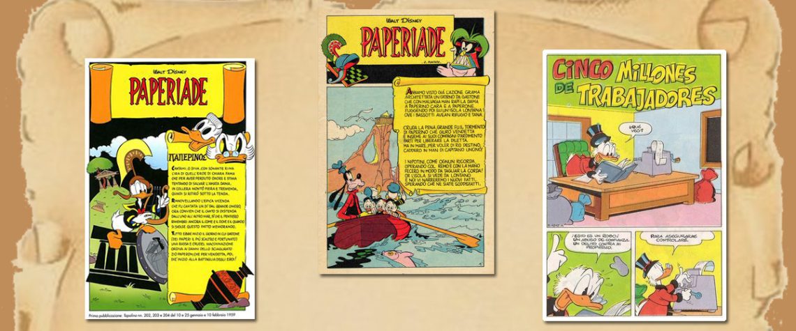 Nel nuovo numero di Grandi Classici Disney (n° 328), Luciano Bottaro è presente con ben due storie, entrambe scritte da Guido Martina, realizzate a vent’anni di distanza l’una dall’altra. La prima è la conosciutissima “Paperiade”, pubblicata per la prima volta, a puntate, nel 1959 su Topolino (n°202-203-204) e, successivamente, ristampata su molteplici testate Disney italiane ed estere. Come si può dedurre non solo dal titolo ma anche dall’ indimenticabile tavola introduttiva che rimanda alla Grecia antica, si tratta di una rivisitazione dell’Iliade di Omero, basata su un banale equivoco, in cui accanto ai paperi recitano, eccezionalmente, Pippo e Capitan Uncino.