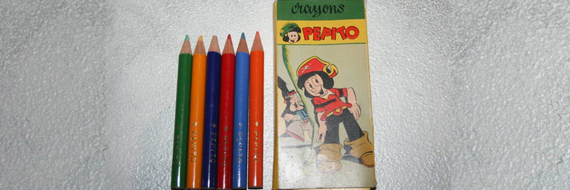 Tutto questo è successo, su Ebay Francia, per una rarissima scatola di pastelli Pepito, così descritta dal venditore“Je mets à la vente cet objet publicitaire Chocolat : Ancienne Boîte de Crayon Pépito – 6 Crayons couleurs en Cèdre de Californie”.