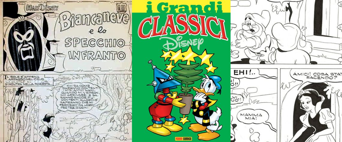 Questo mese, Grandi Classici Disney (n° 349) propone una storia singolare disegnata da Luciano Bottaro e scritta da Guido Martina, “Biancaneve e lo specchio infranto” (TL 197 – 1958). Singolare è la trama che affronta temi come la malattia e la morte che, oggi, probabilmente, verrebbero censurati. Biancaneve infatti torna a fare visita ai suoi amici nanetti nello stesso momento in cui la strega Grimilde apprende di essere prossima alla morte, triste destino a cui potrà sfuggire solo recuperando lo specchio infranto.