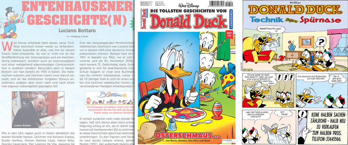 Il caporedattore, Joachim Stahal, ci comunica che nel prossimo numero (n° 370), in uscita il 6 marzo, il redazionale sarà dedicato a Luciano Bottaro, presente nel volume, in veste di disegnatore di “Donald Duck Technik gegen Spürnase”, storia apparsa in Italia nel 1967 sull’ Almanacco di Topolino (n° 124), con il titolo “Paperino e la ricchezza in pugno.