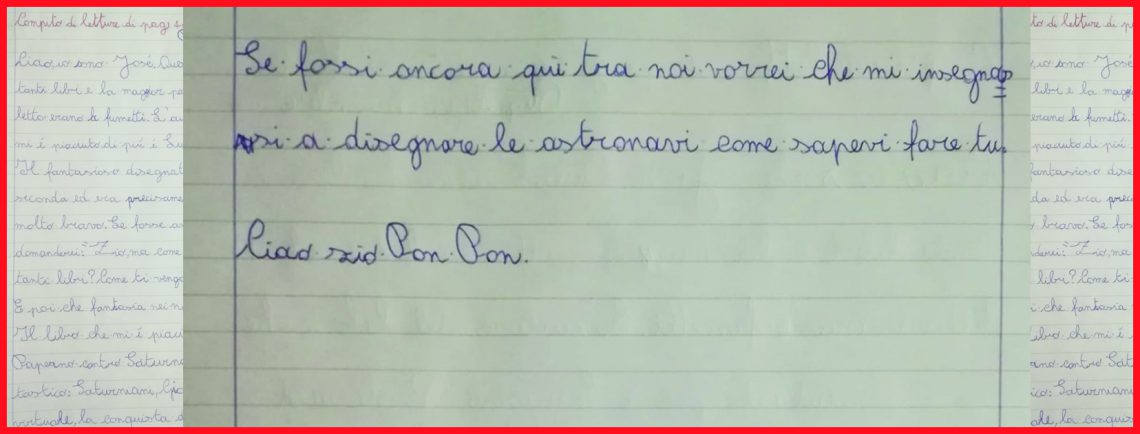 Se fossi ancora qui tra noi, vorrei che mi insegnassi a disegnare le astronavi come sapevi fare tu.