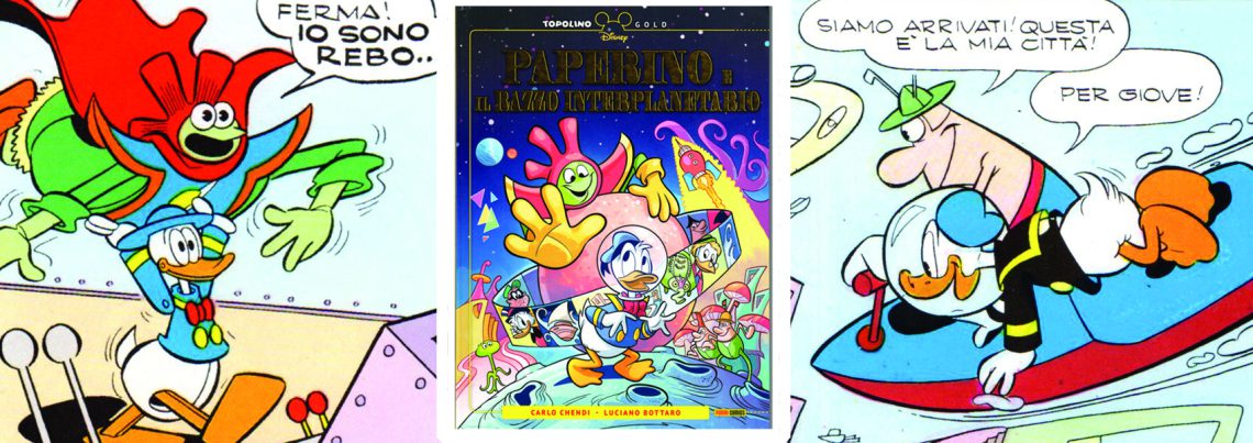 Si tratta di Topolino Gold, una recente collana di casa Panini, nata per presentare le storie Disney più classiche in una veste editoriale elegante, che dedica la sua terza uscita a Paperino e il razzo interplanetario, storia scritta e disegnata da Bottaro nel 1960, con la collaborazione di Carlo Chendi per la sceneggiatura, e pubblicata su Topolino in tre puntate.