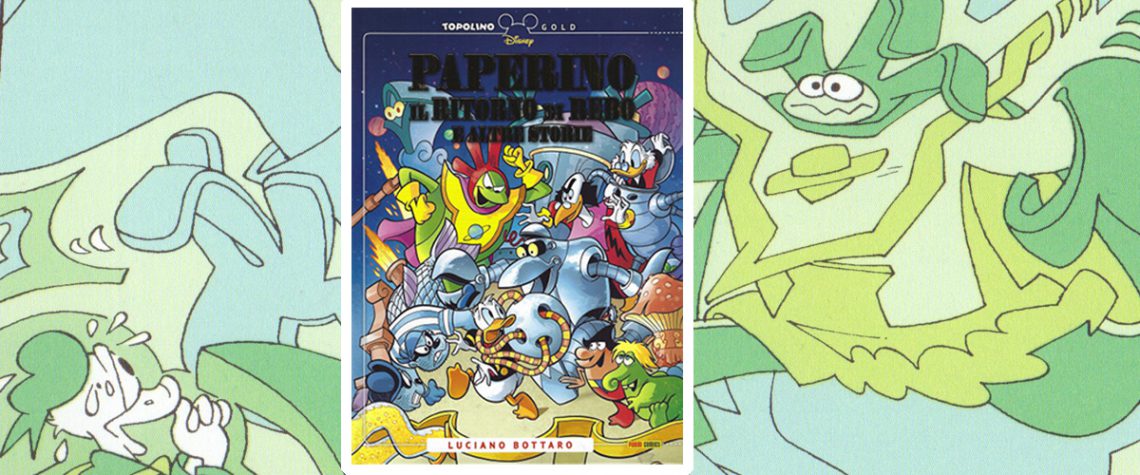 A distanza di un anno dall’uscita del volume dedicato a “Paperino e il razzo interplanetario, Rebo torna su Topolino Gold con i tre episodi che completano la saga del dittatore di Saturno, scritti e disegnati da Luciano Bottaro nella seconda metà degli anni Novanta.